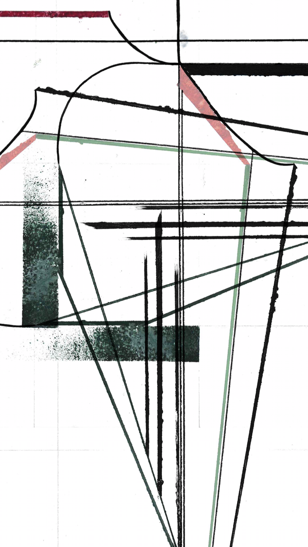 By travelling to three different places within The Netherlands, using a system of random coördinates, I came across three various environments. The inspiration gained from these places were translated into three themes of material paintings and prints: 52.0705°, 4.3007°/ 52.7055°, 4.7053°/ 52.0419°, 5.1563°.